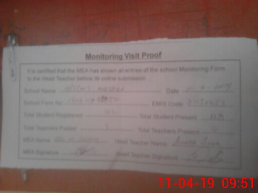 | Certified that this School was Inspected by the Undersigned MEA/DMO Today and the Information Stated Above is as Per Record. | |||||