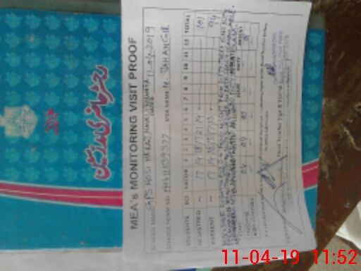| Monitoring Date: 11-04-2019 | Start Time: 11-04-2019 10:19 AM | End Time: 11-04-2019 11:57 AM | Name of MEA: Mu**** Ja**** | |