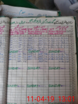 | CNIC | Full Name | Designation | R/C | Absence During Last Calender Month |