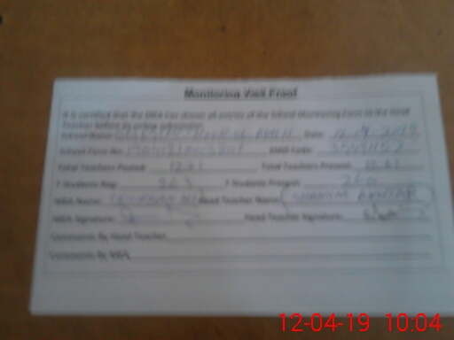 | Attendance Register | Head Teacher | MEA with School | Visit Proof |