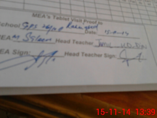 | Attendance Register | Head Teacher | MEA with School | Visit Proof |