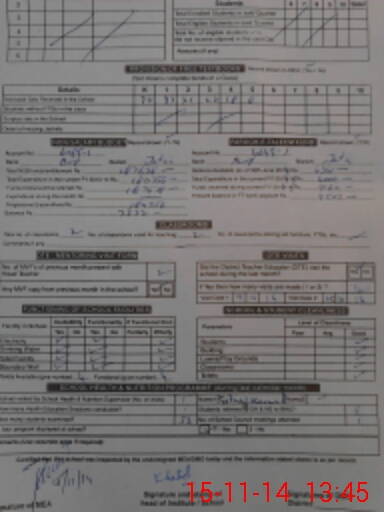 | School Visited by School Health & Nutrition Supervisor (No. of Visits) | 1 | Name1: | Gulnaz Kanwal | Name2: | |