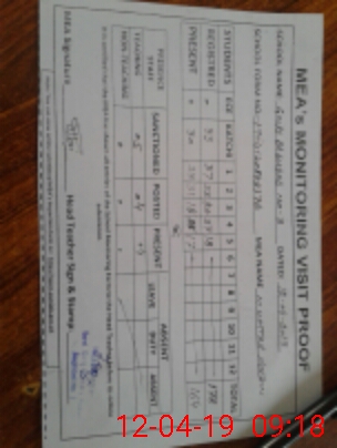 | Attendance Register | Head Teacher | MEA with School | Visit Proof |