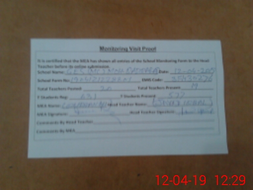 | EMIS Code: 35430276 | Name of School: GES MC MOHALLAH QADIR ABAD SHAH COLONY | |||