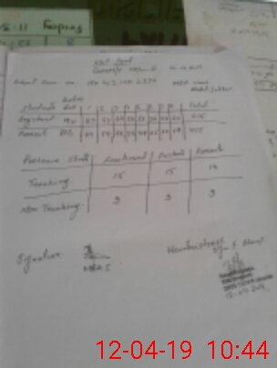 | No. of Students Present - Male | 0 | 0 | 15 | 13 | 23 | 26 | 22 | 18 | 0 | 0 | 0 | 117 | ||||