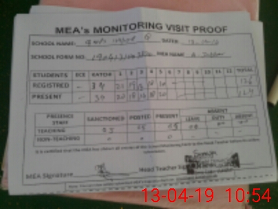 | Attendance Register | Head Teacher | MEA with School | Visit Proof |