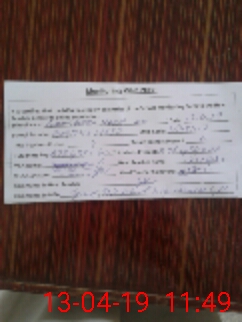 | Monitoring Date: 13-04-2019 | Start Time: 13-04-2019 11:12 AM | End Time: 13-04-2019 11:53 AM | Name of MEA: Mu**** Ra**** | |