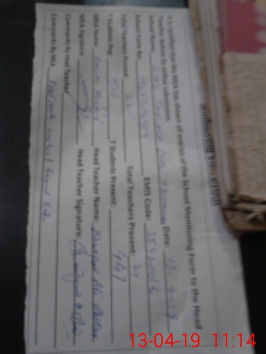 | Certified that this School was Inspected by the Undersigned MEA/DMO Today and the Information Stated Above is as Per Record. | |||||