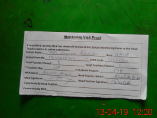 | Certified that this School was Inspected by the Undersigned MEA/DMO Today and the Information Stated Above is as Per Record. | |||||