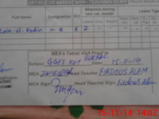 | Attendance Register | Head Teacher | MEA with School | Visit Proof |