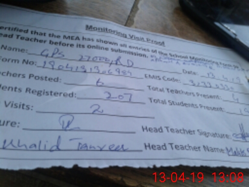 | Attendance Register | Head Teacher | MEA with School | Visit Proof |