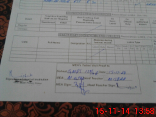 | Certified that this School was Inspected by the Undersigned MEA/DMO Today and the Information Stated Above is as Per Record. | |||||