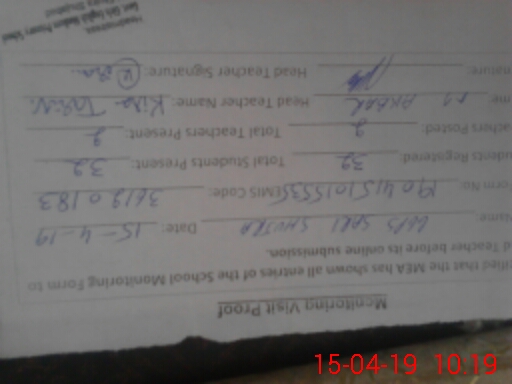 | Certified that this School was Inspected by the Undersigned MEA/DMO Today and the Information Stated Above is as Per Record. | |||||