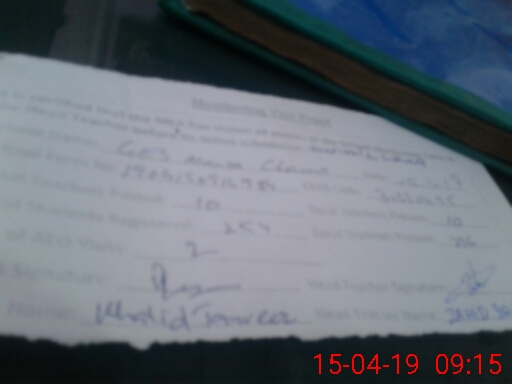 | Name: Gh**** Na**** Designation: (School Headmaster's/Headmistress's) EST Phone/Cell Number: 03**** |