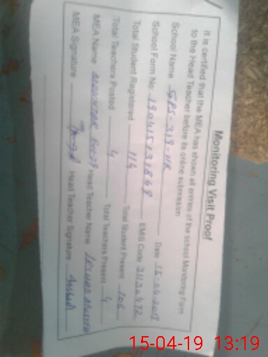 | Certified that this School was Inspected by the Undersigned MEA/DMO Today and the Information Stated Above is as Per Record. | |||||