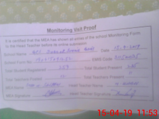 | EMIS Code: 31150035 | Name of School: GES DABBAR SHAKAR GUNJ | |||