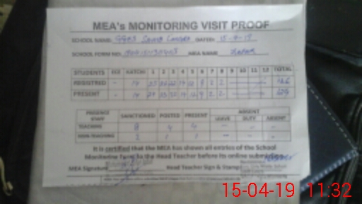 | Attendance Register | Head Teacher | MEA with School | Visit Proof |