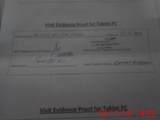 | Attendance Register | Head Teacher | MEA with School | Visit Proof |
