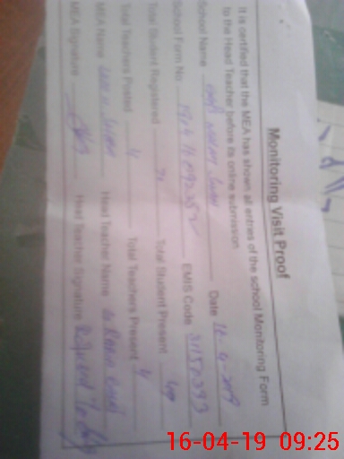 | Certified that this School was Inspected by the Undersigned MEA/DMO Today and the Information Stated Above is as Per Record. | |||||