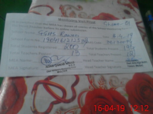| EMIS Code: 36130094 | Name of School: GGHS RAWANI MULTAN | |||