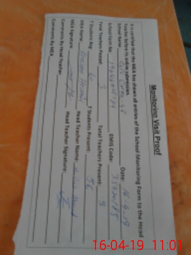 | Attendance Register | Head Teacher | MEA with School | Visit Proof |