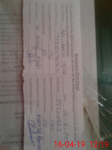 | Certified that this School was Inspected by the Undersigned MEA/DMO Today and the Information Stated Above is as Per Record. | |||||