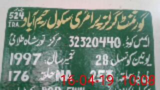 | EMIS Code: 32320440 | Name of School: GGPS RAHIM ABAD CHAK NO. 524/TDA | |||