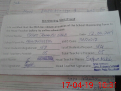| Certified that this School was Inspected by the Undersigned MEA/DMO Today and the Information Stated Above is as Per Record. | |||||