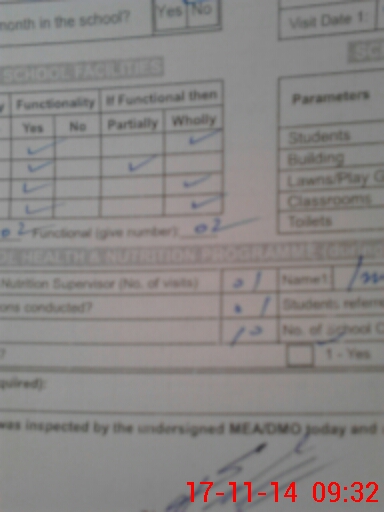 | School Visited by School Health & Nutrition Supervisor (No. of Visits) | 1 | Name1: | Imran | Name2: | |