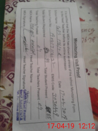 | Attendance Register | Head Teacher | MEA with School | Visit Proof |