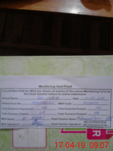 | Certified that this School was Inspected by the Undersigned MEA/DMO Today and the Information Stated Above is as Per Record. | |||||