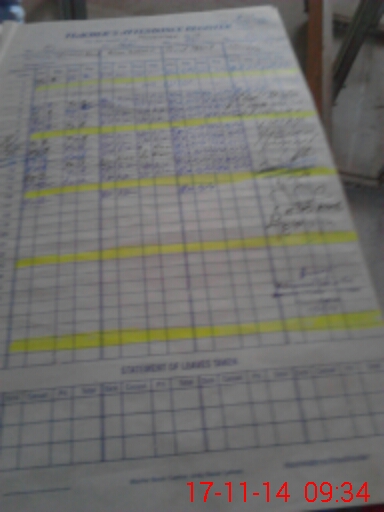 | CNIC | Full Name | Designation | R/C | Absence During Last Calender Month |