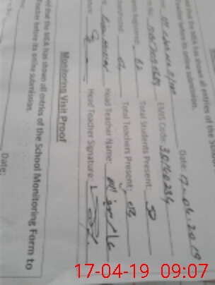 | Certified that this School was Inspected by the Undersigned MEA/DMO Today and the Information Stated Above is as Per Record. | |||||