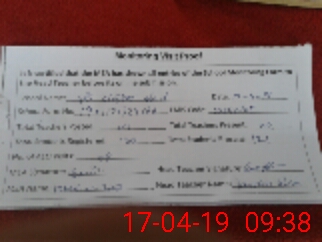 | Monitoring Date: 17-04-2019 | Start Time: 17-04-2019 09:21 AM | End Time: 17-04-2019 09:58 AM | Name of MEA: Mu**** Iz**** UlHa**** | |