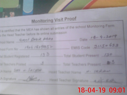 | Attendance Register | Head Teacher | MEA with School | Visit Proof |