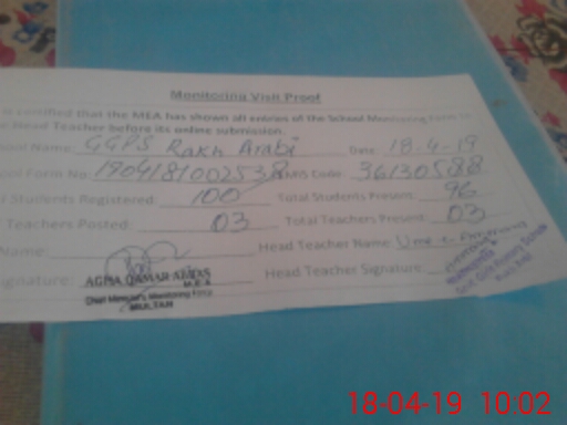 | EMIS Code: 36130588 | Name of School: GGPS RAKH AARBI JALALABAD | |||