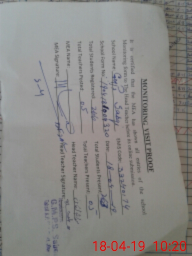 | Attendance Register | Head Teacher | MEA with School | Visit Proof |