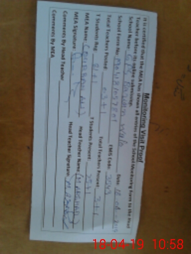 | Attendance Register | Head Teacher | MEA with School | Visit Proof |
