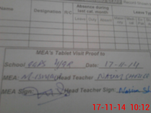 | Attendance Register | Head Teacher | MEA with School | Visit Proof |