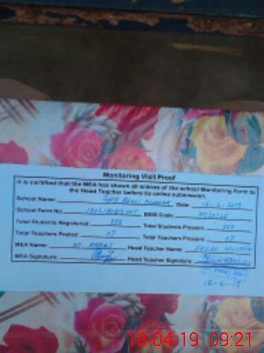 | Certified that this School was Inspected by the Undersigned MEA/DMO Today and the Information Stated Above is as Per Record. | |||||