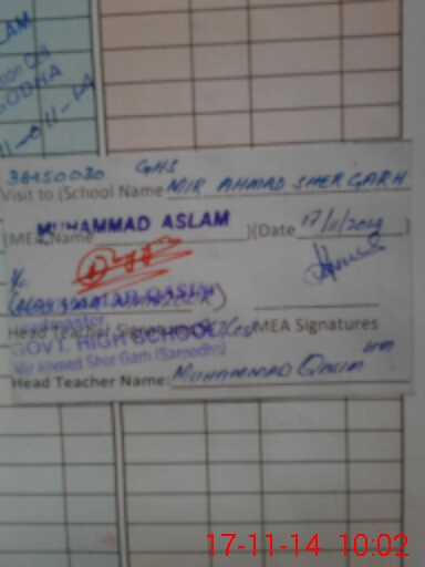 | EMIS Code: 38450030 | Name of School: GHS MIR AHMED SHER GARH | |||