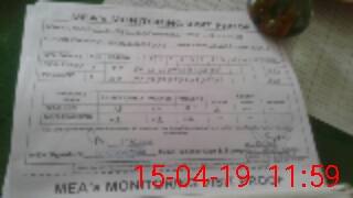 | Monitoring Date: 15-04-2019 | Start Time: 15-04-2019 11:20 AM | End Time: 15-04-2019 12:24 PM | Name of MEA: M.Ra**** Kh**** (R**** | |