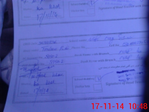 | Name: Zu**** Sh**** Designation: (School Headmaster's/Headmistress's) Ese Phone/Cell Number: 03**** |