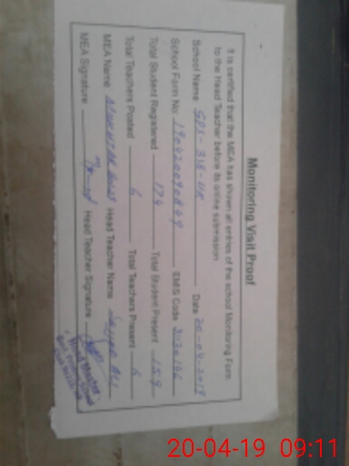 | Certified that this School was Inspected by the Undersigned MEA/DMO Today and the Information Stated Above is as Per Record. | |||||