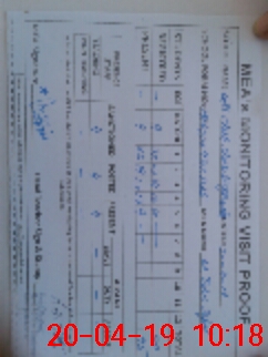 | Monitoring Date: 20-04-2019 | Start Time: 20-04-2019 09:32 AM | End Time: 20-04-2019 10:21 AM | Name of MEA: M.Ta**** Iq**** (S**** | |