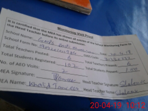 | Certified that this School was Inspected by the Undersigned MEA/DMO Today and the Information Stated Above is as Per Record. | |||||