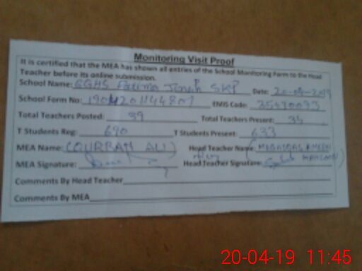 | EMIS Code: 35430093 | Name of School: GGHS FATIMA JINNAH SHEIKHUPURA | |||