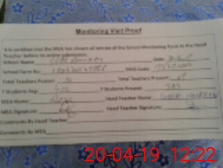 | Attendance Register | Head Teacher | MEA with School | Visit Proof |