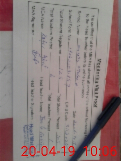 | Monitoring Date: 20-04-2019 | Start Time: 20-04-2019 08:53 AM | End Time: 20-04-2019 10:08 AM | Name of MEA: Za**** Iq**** BN**** | |