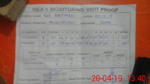 | Attendance Register | Head Teacher | MEA with School | Visit Proof |